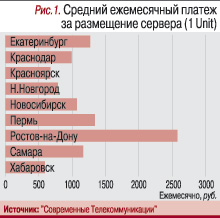 Величину ежемесячных платежей за услугу colocation, включая абонентскую плату за размещение сервера и плату за трафик, мы оценивали для модели «один сервер, один порт 10 (100) Мбит/с, два IP-адреса, входящий трафик – 5 Гбайт, исходящий – 15 Гбайт». Именно такое соотношение входящего и исходящего трафика (5/15 Гбайт), по сообщениям представителей региональных дата-центров, наиболее вероятно для одного сервера. И именно такая модель характеризует работу сервера, на котором размещен среднестатистический информационный интернетсайт, поддерживающий ежедневные обращения десятков абонентов. Естественно, при изменении потребления трафика платежи могут существенно измениться.