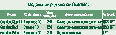 Сегодня на отечественном рынке систем защиты ПО наиболее широко представлены электронные ключи следующих марок: Guardant российской компании «Актив» (таблица), Sentinel американской компании SafeNet (в 2004 г. слившейся с Rainbow), а также HASP и Hardlock израильской фирмы Aladdin.