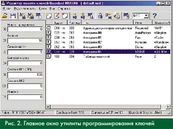 Утилита программирования электронных ключей отвечает за работу с памятью ключа (рис. 2). Поддерживаемые функции: чтение/запись данных, создание, редактирование и удаление полей памяти, установка и снятие аппаратных запретов на доступ к памяти, работа с аппаратными алгоритмами, кодирование/декодирование данных программы в ключе, тестирование выполнения функций API с заданными параметрами и др.