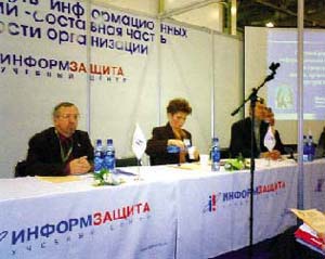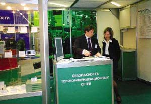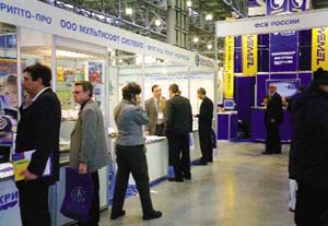 Позволю себе обнародовать мнение примерно 80%из опрошенных мной гостей форума – профессионалов в области ИБ: различия между средствами ИБ, пожаротушения и самообороны столь очевидны, что их соседство в экспозиции по меньшей мере удивляет, тем более при наличии множества специализированных выставок. Экспозиция ИБ. Характерный признак большинства компаний-экспонентов раздела ИБ – их определенная связь с госструктурами: группа фирм, разрабатывающих в сотрудничестве с ФАПСИ аппаратно-программные средства шифрования, сертификационные и учебные центры, создатели средств защиты информации для госпредприятий. Известные в отрасли имена были представлены компаниями «Информзащита», «Оптима» и «Элвис Плюс».