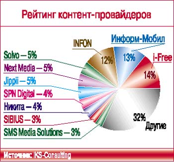 – Какие, на ваш взгляд, тенденции определяют сегодня развитие рыночной ситуации?Каким будет для контент-провайдеров 2005 год? – Этап становления индустрии завершается. В минувшем году сложилась основная группа ключевых игроков: это 6 – 7 компаний, которым принадлежит около 70% рынка. С прошлого лета конкуренция между ними предельно обострилась, так что нередко случалось, когда в СМИ публиковалось по 8 – 9 полос с рекламой мобильных услуг, а в рекламных блоках на ТВ могло стоять по 10 – 12 роликов, рекламирующих рингтоны. Такая ситуация практически не оставляла шансов небольшим компаниям, и нам известно, что некоторые из них уже с конца прошлого года работали с отрицательной рентабельностью.