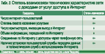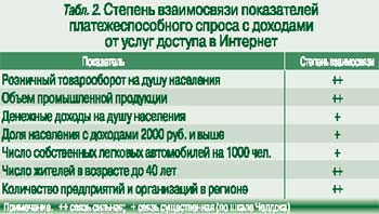 Показатели качества техники связи и уровня технологического развития (количество линий на одного работника, цифровизация сети) не играют существенной роли для доходности доступа в Сеть (зависимость – 32 – 40%): аудитория пользователей пока настолько мала, что для ее обслуживания достаточно имеющегося оборудования. С ростом их числа и повышением требований к качеству услуги эти показатели будут приобретать более существенное значение.