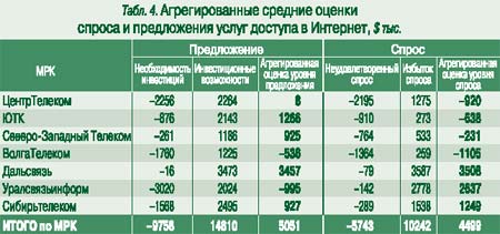 Показатели деятельности межрегиональных операторов связи объединены в четыре агрегированные оценки спроса и предложения (табл. 4), тогда как их дифференциация по филиалам внутри каждой МРК значительна. Единый подход к оценке дополнительных возможностей и ограничений по росту доходов от Интернета позволяет построить квадрант инвестиционных стратегий этих компаний (рис. 4).