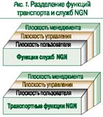 Следует различать три логически выделенных понятия: пользователи, устройства (терминалы) и имеющие адрес пункты, к которым могут получить доступ пользователи и/или устройства. Это должно обеспечить пользователю возможность менять терминал и пункт доступа к сети, а также иметь неограниченный доступ к разным поставщикам служб с помощью различных технологий доступа (например, через фиксированные сети, сети подвижной связи 3-го поколения, через технологии «последней мили» ). Намечены задачи, решение которых позволит обеспечить обобщенную подвижность. Ключевым принципом NGN является отделение функций образования служб/услуг от транспортных функций (рис. 1).