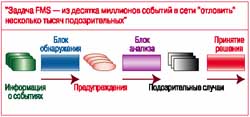Главная задача FMS – обнаружить в общем потоке информации о событиях, происходящих в сети (а таких в крупных сетях десятки миллионов в сутки! ), те, которые так или иначе указывают на характерные для мошеннических действий признаки (их – несколько тысяч в сутки), и определить, является ли данная активность абонента мошеннической или нет (подобных случаев в реальной сети – сотни). При этом задача логически разделяется на два этапа – обнаружение подозрительных событий и их анализ.