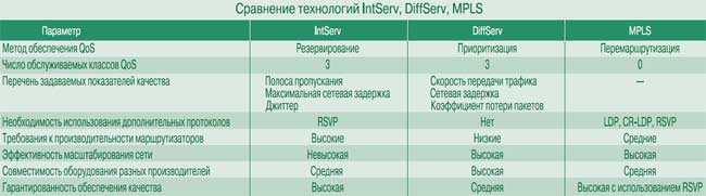 Таким образом, рассмотренные технологии обеспечивают качество обслуживания, позволяя оптимально использовать ресурсы сети связи. Методы обеспечения качества, лежащие в основе этих технологий, определяют область их применения в существующих сетях. Технология IntServ больше подходит для небольших пограничных сетей, в то время как в крупных транзитных сетях предпочтительнее использовать DiffServ и MPLS. Поэтому важно обеспечить четкое взаимодействие этих технологий между собой.