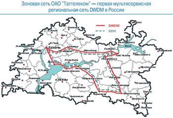 О степени развития ИКТ региона свидетельствует прежде всего уровень технического совершенства его инфраструктуры. К началу 2003 г. руководство отраслевого министерства Татарии было вынуждено признать, что действующая зоновая сеть уровня STM-4 уже не удовлетворяет потребностям растущего трафика в республике и требует широкомасштабной реконструкции. Предполагалось связать все крупные города в большое кольцо сетью не ниже уровня STM-16; в каждом узле должны выводиться потоки Е1, а в крупных – Gigabit Ethernet (желательно не один); возник вопрос и об использовании волнового уплотнения. Победителем конкурса среди поставщиков оборудования стала Huawei Technologies. Успешное партнерство этой компании с операторами Татарстана имеет пятилетнюю историю. На оборудовании Optix 2500+ китайского производителя уже работают сети Казанской ГТС (три кольца STM-16) и «Таттелекома» в Набережных Челнах с передачей на всех узлах трафика Fast Ethernet. Кроме того, в республике широко используются цифровые АТС C&C08. Но главное свидетельство в пользу Huawei – успешный опыт строительства в России сети DWDM для «Ростелекома» «ТрансТелеКома» на аналогичном оборудовании. Тем не менее вначале, два года назад, специалисты «Таттелекома» и Министерства связи республики неоднократно подвергали проект серьезной экспертизе, и не единожды оператор отказывался от своей идеи.