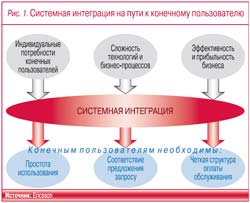 В условиях стремительного развития рынка телекоммуникационных услуг оператор, борясь за привлечение новых и удержание существующих абонентов, должен учитывать такие ожидания конечных пользователей, как простота использования (ease-of-use), соответствие предложения запросу (get-what-I-order), четкая структура оплаты обслуживания (pay-for-what-I-get). В то же время оператор должен достигать намеченных ориентиров роста бизнеса и эффективности и уметь использовать возможности, которые возникают по мере эволюции сетей. В этой все усложняющейся и динамичной бизнессреде не обойтись без надежной технической поддержки в области системной интеграции (рис. 1).
