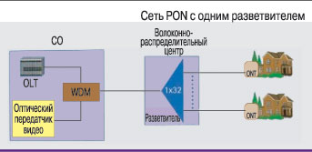 В оптической части сетей FTTx в основном применяются технологии Ethernet и пассивных оптических сетей (PON). Поскольку в сетях PON (см. рисунок) на участке между оптическим линейным терминалом (OLT), расположенным в центральном узле связи (CO), и абонентским оптическим сетевым терминалом (ONT) активное оборудование не используется, эти сети значительно проще и дешевле инсталлировать и обслуживать. Посредством одного или нескольких пассивных разветвителей множество ONT подключают к одному линейному волокну, идущему от OLT. Трафик Интернетa и телефонии OLT передает и принимает (от ONT) на длинах волн 1490 и 1310 нм соответственно, а видеоданные вводятся в «дерево» PON посредством устройства спектрального уплотнения WDM и транслируются абонентам на длине волны 1550 нм. Оптические измерения необходимо осуществлять в ходе строительства, ввода в эксплуатацию и последующего технического обслуживания сетей PON, а также при подключении к ним новых ONT.Устанавливаем и измеряем, устанавливаем и измеряем…