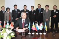 Основным вопросом встречи представителей администраций связи (АС) стала подготовка ко II сессии Региональной конференции радиосвязи 2006 г. в Женеве, посвященной планированию цифровой наземной радиовещательной службы в полосах частот 174–230 и 470–862 МГц. Главным итогом встречи стало подписание представителями АС Армении, Беларуси, Казахстана, Кыргызстана, Молдовы, России, Таджикистана, Узбекистана и Украины Общих предложений РСС по работе РКР-06. Документ направлен в Бюро радиосвязи МСЭ в качестве вклада в предстоящую вторую сессию конференции. «Объединение усилий дает конкретный результат: в рамках РСС мы предварительно согласовали единый План распределения частот для цифровых технологий, отвечающий требованиям всех администраций связи стран СНГ, – комментирует зам. руководителя Департамента связи Исполкома РСС