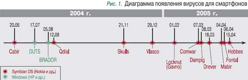 Несмотря на то что все чаще в СМИ появляются предостережения против мобильных вирусов, ни владельцы смартфонов, ни операторы еще не осознали всю серьезность угрозы. Поэтому практически никто из них до сих пор не задумывался о средствах защиты. А зря. Первыми предвестниками беды стали несколько инцидентов летом 2000 г. в сети японского оператора NTT DoCoMo, когда некоторые модели телефонов, поддерживающие i-mode, после получения особым образом сформированного сообщения начинали звонить по номеру 110 (японская служба спасения). Телефон абонента при этом полностью блокировался. В итоге callцентр службы спасения оказался буквально парализован. После этого инцидента японские власти жестко потребовали от компании DoCoMo решить эту проблему.