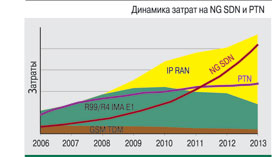 При анализе сценариев эволюции услуг учитывались снижение стоимости и техническая готовность микропроцессоров в будущем. Вывод был сделан такой: если пакетный трафик занимает более 70% полосы пропускания, то применение технологий PTN будет дешевле, чем NG SDH. Конечно, в 2009 г. это условие выполнено не будет, но на некоторых направлениях можно ожидать существенного увеличения объемов пакетного трафика, особенно у сотовых операторов после запуска 3G. Например, при запуске привлекательных тарифов в отдельных районах в ночное время будет преобладать трафик передачи данных.