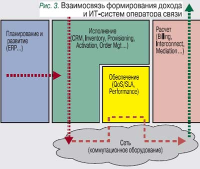 Цепочка формирования доходов обеспечивается и поддерживается соответствующими OSS/BSS-системами, системами уровня предприятия и системами управления сетевыми элементами (рис. 3)*.