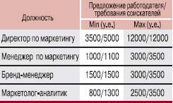 Вознаграждение специалистов по маркетингу зависит от масштаба и профиля компании: у проводных операторов зарплата традиционно ниже, чем в сотовых компаниях, хотя есть исключения. В среднем уровень заработных плат для столичного рынка телекоммуникаций и самых востребованных специалистов по маркетингу в телекоммуникациях на август 2006 г. приведен в таблице.