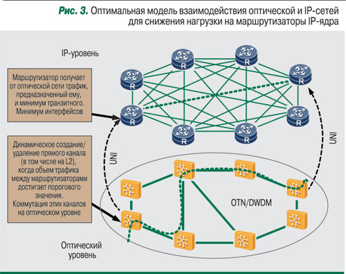 По оценкам операторов, переход к взаимодействию оптической и IP-сети через UNI может снизить требования к производительности маршрутизаторов в ядре IP-сети на 25–50%. Стоимость же оптического оборудования и его энергопотребление на бит предаваемой информации в 3–5 раз меньше, чем у IP-оборудования. Считайте сами.