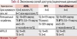 И. Колпаков («Контур-М»), анализируя стоимость строительства мультисервисной сети на абонента, дает два варианта ответа там, где речь идет о MetroEthernet, поскольку оператор сети передачи данных и оператор КТВ по-разному понимают потенциального абонента: первый говорит о потенциальных потребителях услуги, второй – о квартире (табл. 6, рис. 3), операторам «Связьинвеста» удобнее оперировать не потенциальными абонентами, а стоимостью на порт.