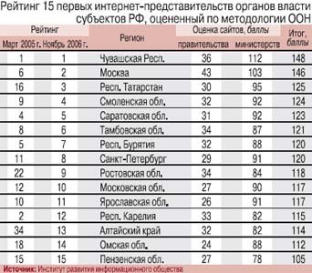 Оценка официальных интернетпредставительств региональных органов власти проводилась сотрудниками Института развития информационного общества в ноябре 2006 г.