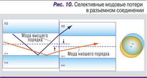 Пространственные возмущения вызывают и селективные модовые потери, которые возникают в разъемных соединениях (рис. 10).