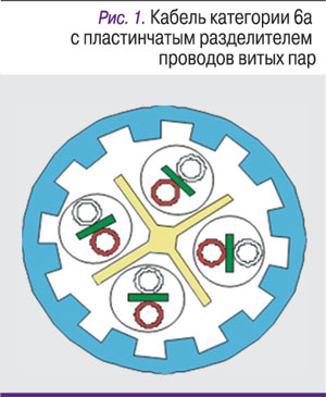 Второй подход реализован компанией Commscope, которая ввела в состав СКС типа Systimax кабели серии 1091. Их отличительная особенность – использование пластинчатого разделителя отдельных проводов витой пары (рис. 1).