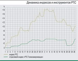За два летних месяца, с 1 июля по 27 августа, отечественный фондовый рынок в целом продемонстрировал умеренный прирост капитализации. Причем если в июле публикации позитивной макроэкономической статистики из ЕС и США и сильная квартальная отчетность ряда крупнейших эмитентов помогли скомпенсировать понесенные на торгах в мае-июне потери, то в августе на российский рынок акций вновь вернулась коррекция. Ее причинами стали как сезонное снижение активности на фондовых площадках, так и усилившиеся опасения инвесторов относительно перспектив мировой экономики, подкрепленные противоречивыми данными об американской экономике и возможным сокращением объемов поддержки сегмента рискованных активов со стороны мировых финансовых регуляторов. Всего за рассматриваемый период индекс ММВБ прибавил 4,37%, до 1366,50 пт, а индекс РТС – 6,12%, до отметки 1421,47 пт. В то же время отраслевые индексы «ММВБ телекоммуникации» и «РТС Телекоммуникации» выросли на 4,79% (2053,88 пт) и 2,27% (205,75 пт) соответственно.