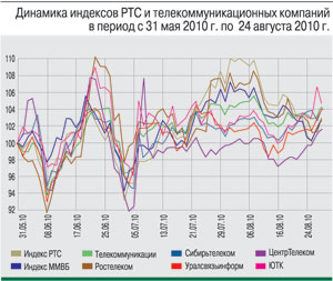 За рассматриваемый период бумаги «Уралсвязьинформа» выросли на 7,31%, достигнув цены 1,0420 руб. Компания выполнила обязательства по выплате дивидендов за 2009 г. по привилегированным акциям в объеме 406,757 млн руб., что составило 99,966% общего объема выплат. Чистая прибыль «Уралсвязьинформа» в I полугодии 2010 г. увеличилась в 2,1 раза – до 3977,2 млн руб., отношение чистой прибыли к выручке выросло на 9,1 процентного пункта – до 18,6%. Показатель EBITDA составил 9490,2 млн руб. (прирост 23,7%), отношение EBITDA к выручке увеличилось на 6,3 процентных пункта, достигнув по итогам I полугодия 44,5%.