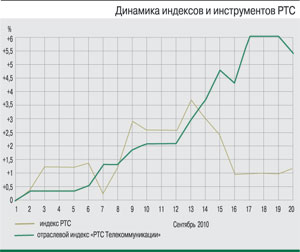 Так, в период с 1 по 20 сентября индекс ММВБ прибавил 4,23%, до отметки 1426,84 пункта, а индекс РТС – 3,17%, до 1467,11 пункта. Отраслевые индексы выросли еще больше – капитализация индексов «ММВБ Телекоммуникации» и «РТС Телекоммуникации» увеличилась на 4,98% (2236,54 пункта) и 5,55% (222,77 пункта) соответственно.