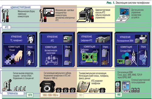 Со временем в цифровой телефонии обозначился новый класс устройств – УАТС, учрежденческая АТС. К этому моменту сложность АТС возросла, а дизайн ее элементов (кремний и программное обеспечение) перестал быть прозрачным. Существенно усложнилась сигнализация между АТС и терминалом, поскольку вычислительная машина АТС уже не только «понимала» примитивные сигналы «запрос-отбой», но и стала управлять телефонами абонентов.
