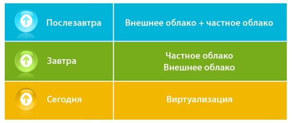 Так что IT становятся все менее запутанными, а более понятными и прозрачными; количество оборудования, необходимого для поддержания ИТ-сервисов сокращается; меньше затрат по электроэнергии и аренде площадей под оборудование – легче, быстрее, выше. Так и хочется оторваться от земли – и процесс уже пошел. Однажды взлетев в облака – возвращаться на землю уже не захочется, к хорошему быстро привыкают. «Облачные вычисления» - качественно новое решение и более эффективное в вопросе организации и сопровождения ИС, начинают свою экскурсию в IT-рай. Возможно, в недалеком будущем у нас не будет такой профессии как, системный инженер или системный администратор – а будут повсеместно стоять гигантские информационные кубы, которые будут полностью самодостаточны и не будут требовать участия человека в своей работе, а будут только предоставлять нужные конечным пользователям сервисы.