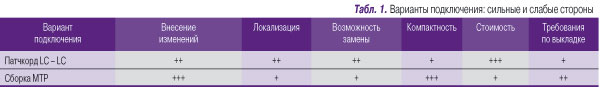Далее в процессе проектирования необходимо принять решение о конфигурации самого тракта: будет ли использоваться коммутационная панель или он будет подключаться непосредственно в порт оборудования (табл. 2).