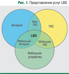 Для разработки LBS-услуг необходимо совместить сразу несколько технологий (рис. 1): Интернет, мобильное устройство и геоинформационную систему (ГИС).
