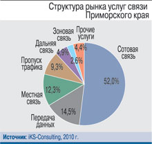 В 2010 г. доходы телекоммуникаций в крае составили 17,6 млрд руб. (28,4% доходов отрасли в ДВФО).