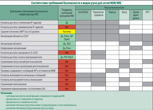 Основные угрозы сетям NGN/IMS и требования к обеспечению их безопасности