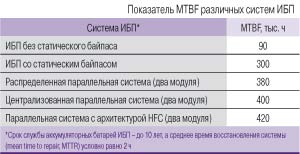 Как показывают статистические расчеты (см. таблицу), среди всех рассмотренных систем наилучшее значение показателя MTBF – у параллельных систем с архитектурой HFC.