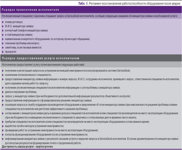 Для каждой инженерной системы в SLA следует указать максимально допустимое время прибытия специалиста для начала работ по устранению инцидента (см., например, табл. 2).