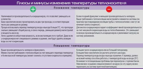 Соответственно выигрыш от уменьшения перепада температур состоит в том, что растет производительность кондиционеров, что позволяет уменьшить их количество, и немного увеличивается производительность чиллеров и фрикулинга.