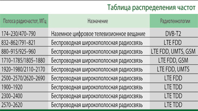 Ниже приведена укрупненная таблица распределения частот, которую желательно не подвергать сомнению, по крайней мере, до конца 2015 г. К этому времени более четко определятся предпочтения потребителей услуг. И, конечно, надо прислушаться к безусловно ценному мнению российских телевизионных вещателей, НАТ и РТРС.
