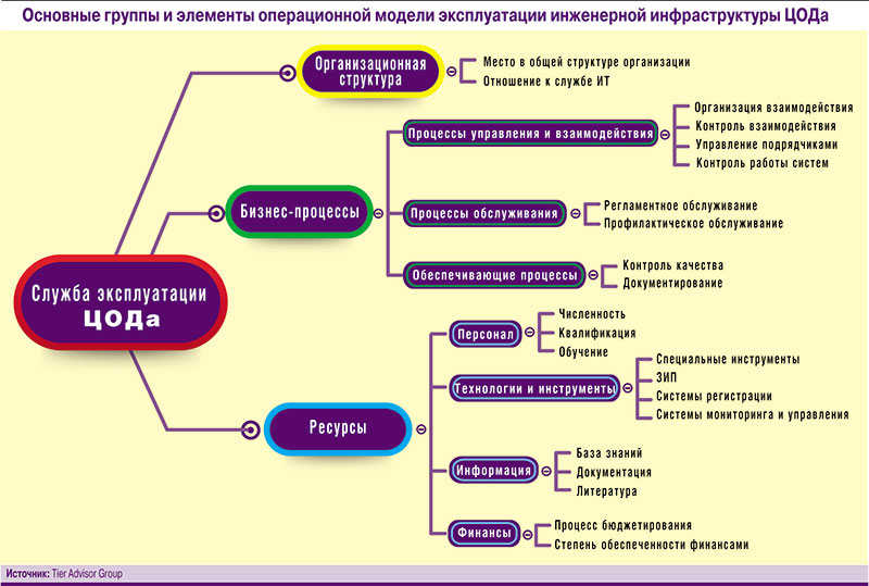 Вместе с тем стоит отметить явную тенденцию к выделению совмещенных служб эксплуатации ЦОДа в организационно самостоятельные подразделения, что нельзя не приветствовать, поскольку такое «сращивание» во всех отношениях идет на пользу как самой службе эксплуатации, так и владельцу дата-центра. Но стандартом де-факто эта тенденция пока не стала.Бизнес-процессы