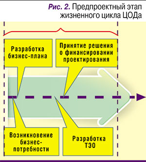 Рассмотрим основные фазы жизненного цикла проекта ЦОДа до момента принятия решения о финансировании (рис. 2) и оценим возможные негативные последствия от ненадлежащего планирования или проработки требуемых результатов.