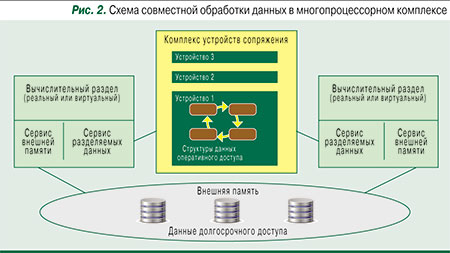 Для облегчения управления обработкой разделяемые данные обычно структурируются, и процессоры комплексирования работают со структурами данных. Собственно обработка разделяемых данных осуществляется с помощью специализированных сервисов. Благодаря этим сервисам задачи, использующие данные, размещенные в устройствах сопряжения, могут выполняться на любой вычислительной установке, входящей в комплекс, могут останавливаться, перезапускаться или переключаться с одной установки на другую.