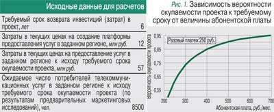 Будем исходить из предположения, что за счет эффективной маркетинговой и рекламной политики оператора абонентская база в планируемый для возврата вложений период не будет сокращаться и ее величина окажется не меньше спрогнозированной. В этом случае можно расчетным путем найти разумный компромисс между ценой, обеспечивающей спрос на услуги, и ценой предложения, а также оценить риски возврата инвестиций.