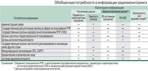 Подавляющую (по объему) часть востребованной информации составляют технические данные: результаты измерений (оценки) технических параметров, определения характеристик радиоизлучений и сведения о занятости РЧС.