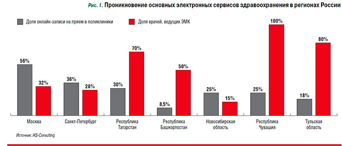 По мнению специалистов iKS-Consulting, наиболее успешны в развитии информатизации здравоохранения следующие регионы: