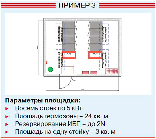 В итоге приблизительно 2–2,4 м по короткой стороне помещения занимают коридор для прохода, кондиционер и электрощит, а остальное пространство можно использовать под установку серверных стоек (рис. 3).