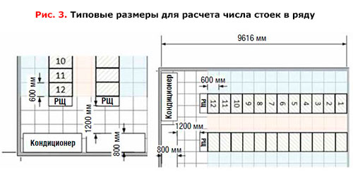 • определение количества стоек, которое можно разместить в выбранных помещениях;