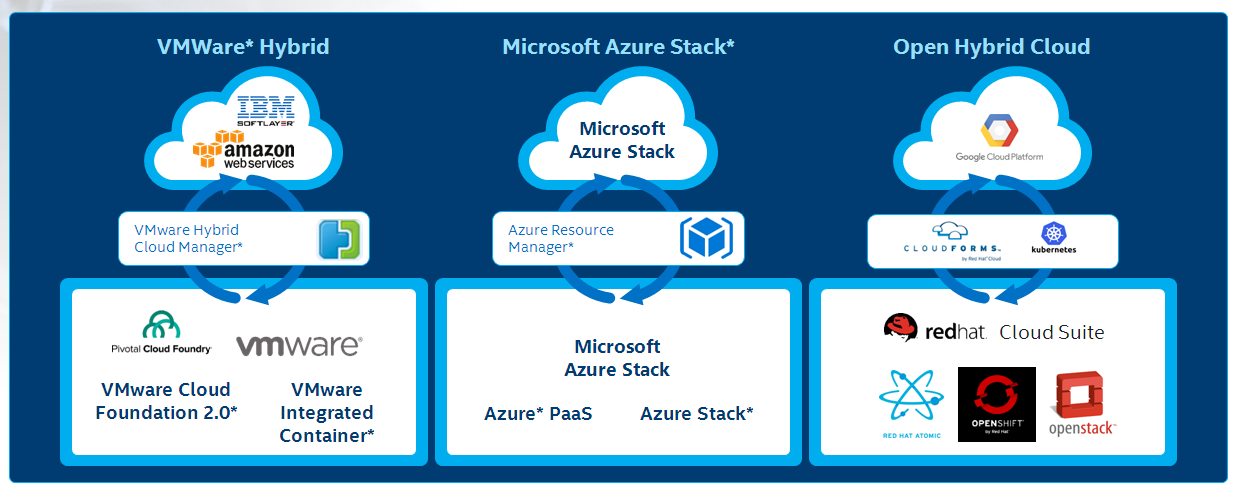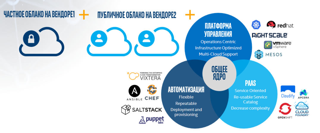 Рис. 2. Вариант организации гибридного решения «своей конфигурации» с использованием систем OpenSource (Источник: из презентации Intel на конференции Cloud & Digital Transformation 2018)