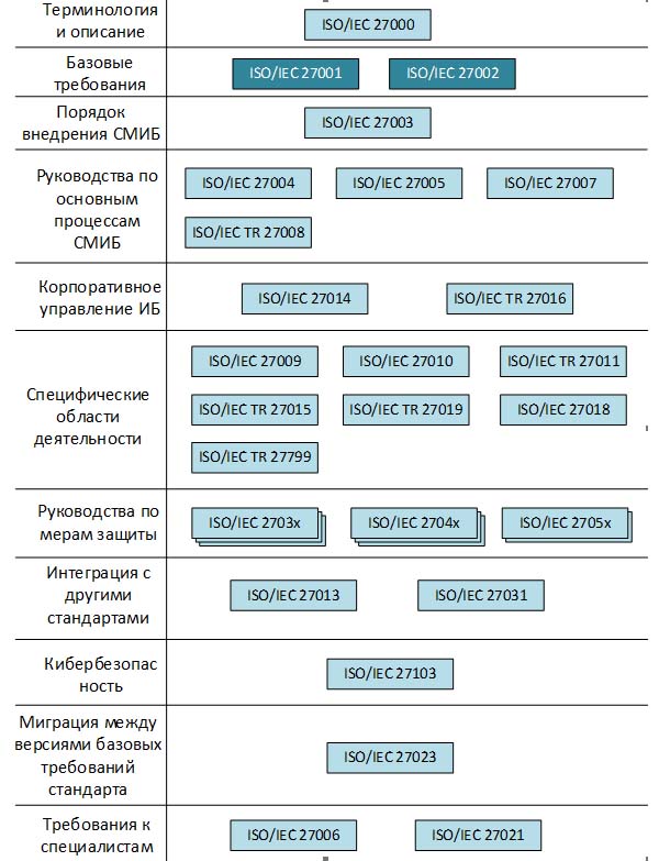 - стандартом ISO/IEC 27000, описывающим терминологию и общий подход всей серии стандартов;