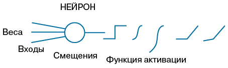 На рис. 1 не показаны вес и смещение – обычно это числа с плавающей запятой в диапазоне от 0 до 1. Простейший пример выхода (функции активации) нейрона – переключатель вкл./выкл., но эта функция может принимать различные формы. В некоторых случаях значение на выходе может быть меньше нуля.