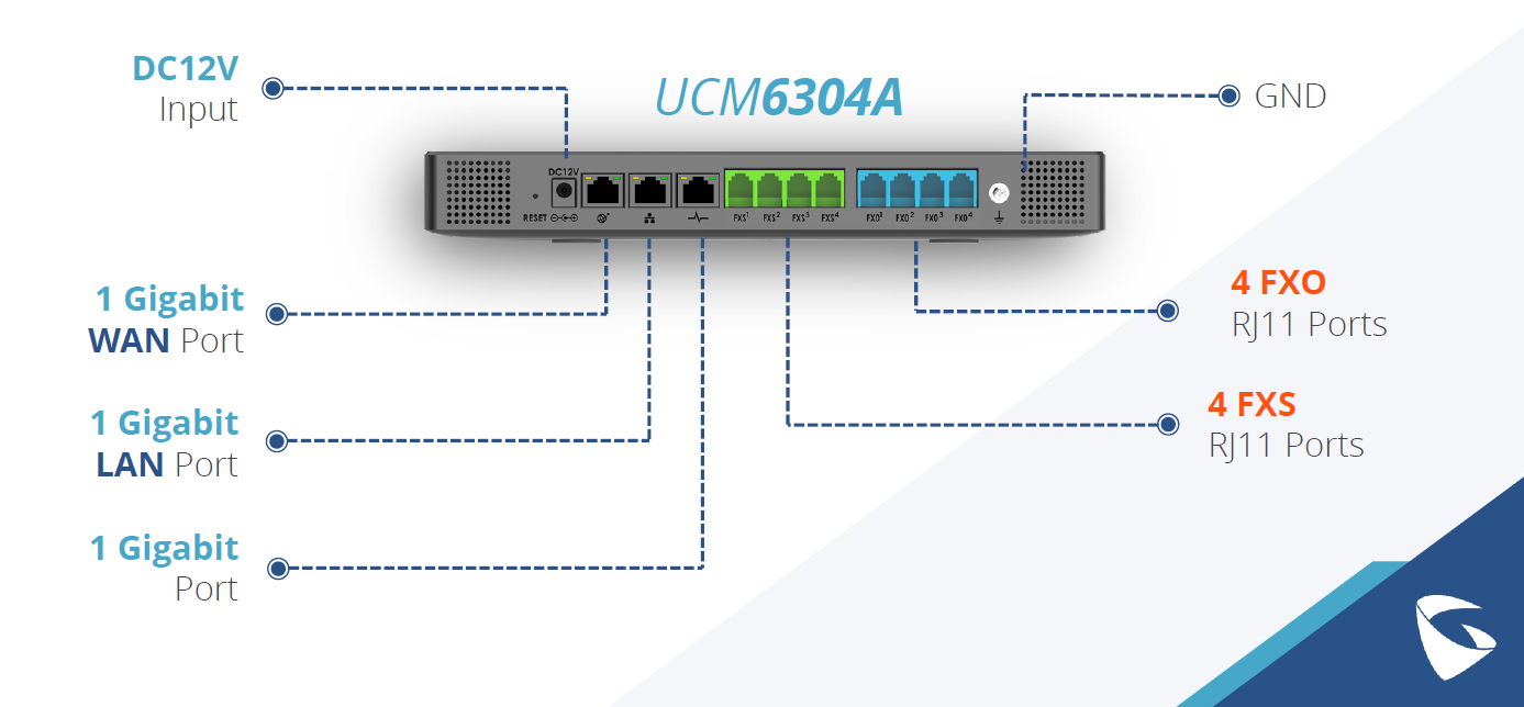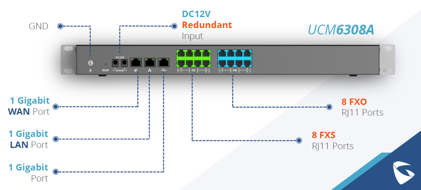 Все IP-АТС UCM63xxА оснащены тремя портами Gigabit Ethernet (10/100/1000) и маршрутизатором с функцией трансляции сетевых адресов (NAT), портами USB 3.0 и слотами для SD-карт. За исключением младшей модели все остальные имеют порты FXS и FXO – в модели UCM6308А по восемь таких портов.