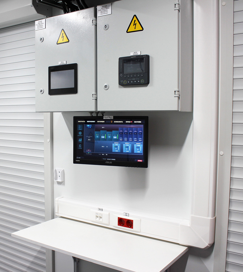 • электроснабжением (включая автоматику дизель-генераторной установки) и распределением питания (в том числе в стойках);