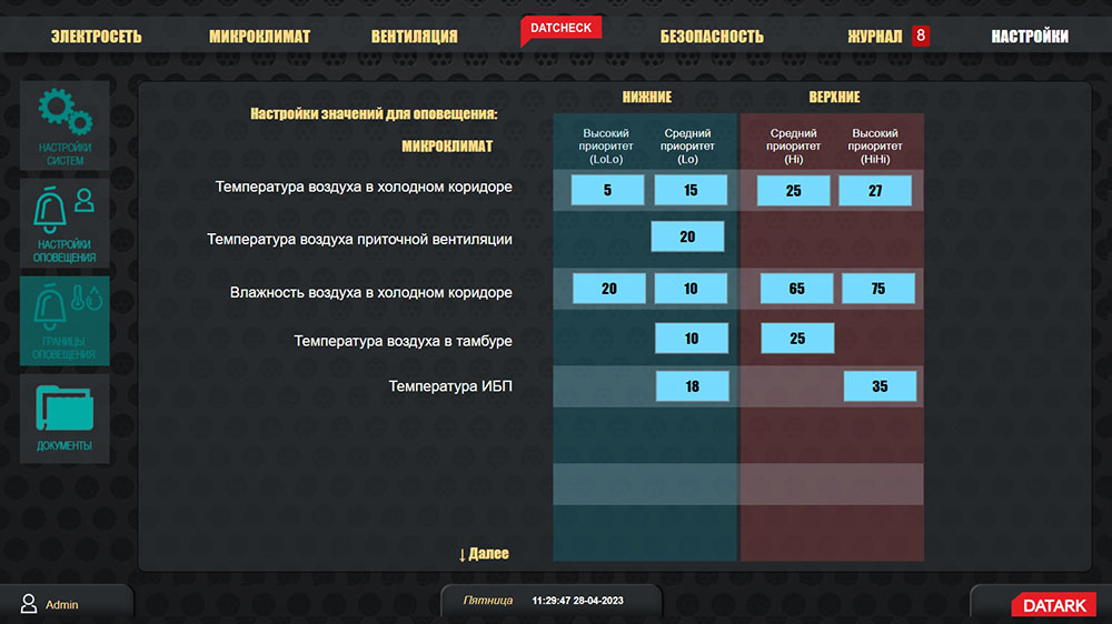 В DATCHECK гибко настраиваются границы и параметры таких оповещений.